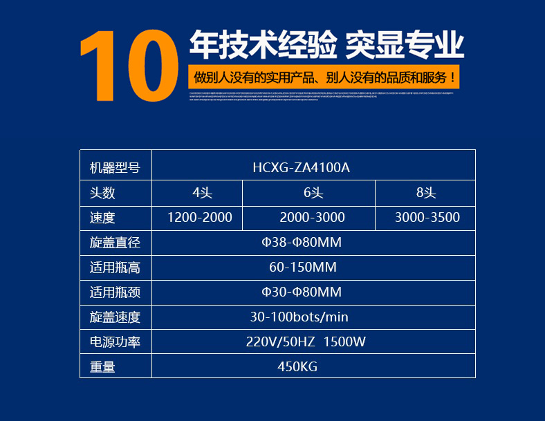 6.旋蓋機構(gòu)高度可快速調(diào)節(jié),可適用相同口徑、不同高度的瓶子旋蓋;更換部分零件即可實現(xiàn)不同瓶徑、不同口徑的旋蓋,更換快捷方便。