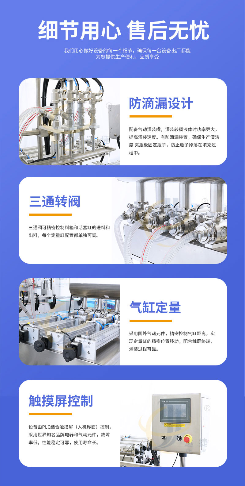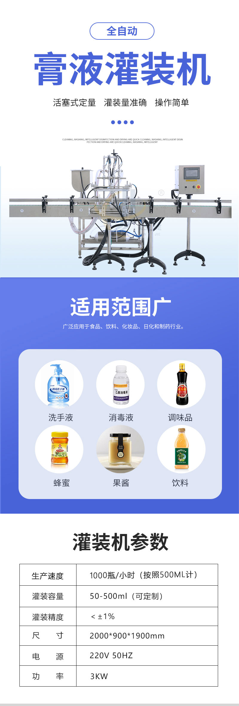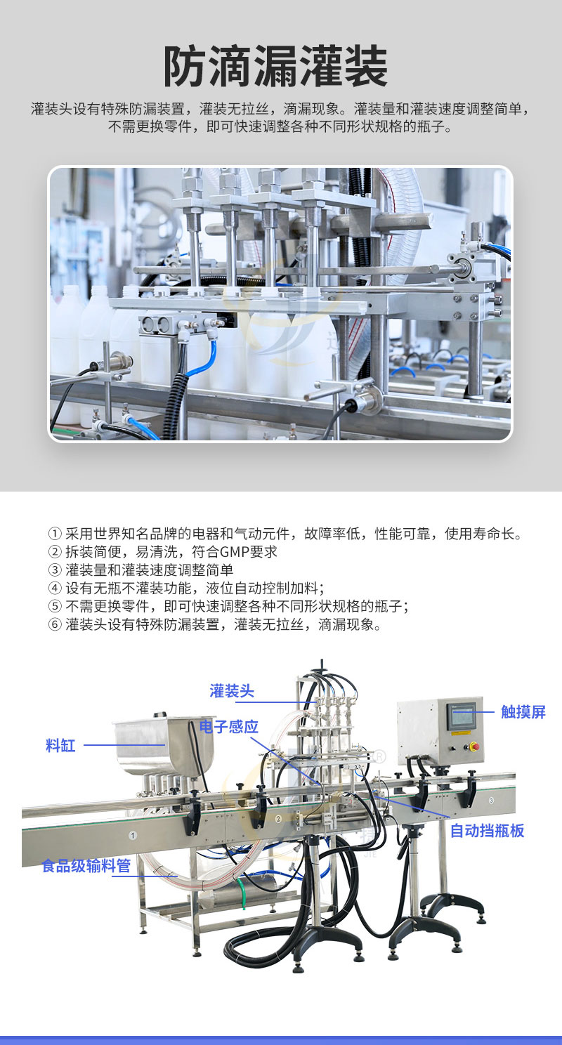 全自動(dòng)膏液灌裝機(jī)適用于食品、飲料、化妝品、日化和制藥行業(yè)。灌裝頭設(shè)有特殊防漏裝置,灌裝無拉絲,滴漏現(xiàn)象。