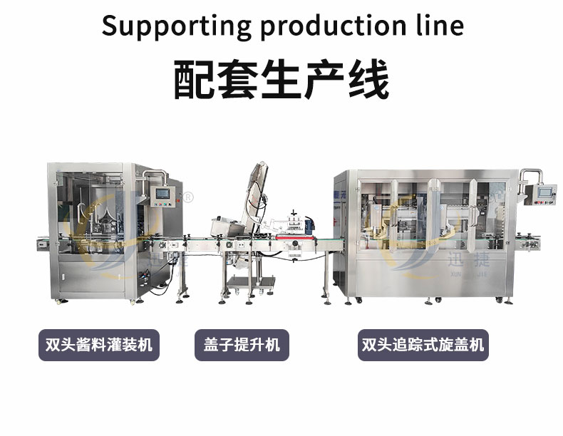 雙頭高速醬料灌裝機(jī)適用于調(diào)味品中帶顆粒并且濃度較大的辣椒醬、豆瓣醬、花生醬、香菇醬、果醬、牛油火鍋底料。