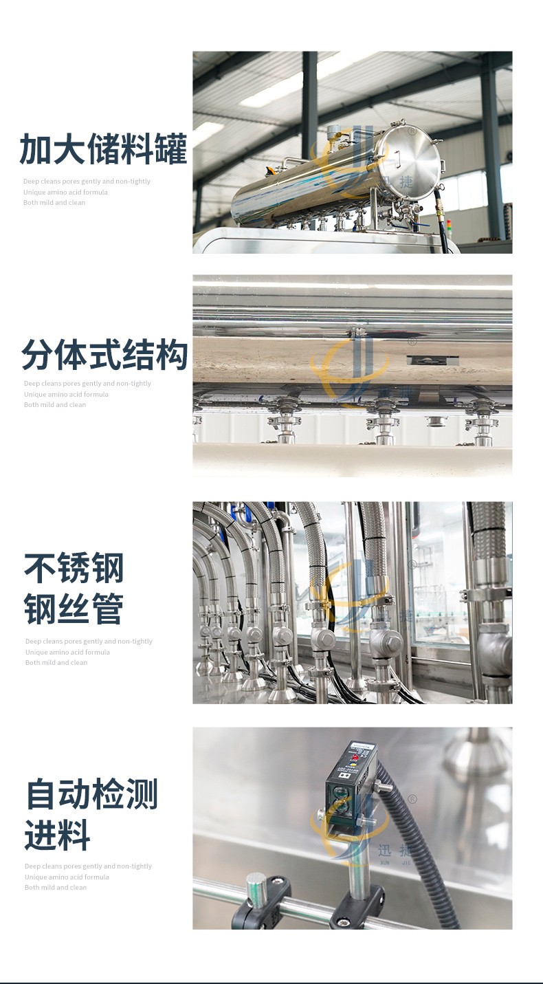 全自動液體灌裝機(jī)迅捷_01.jpg全自動液體灌裝機(jī)用于灌裝飲料、果汁,牛奶,酒精,消毒液,口服液,洗衣液等液體,廣泛應(yīng)用于食品,化工,醫(yī)療等行業(yè),灌裝精密,功能強(qiáng),實(shí)用性高的灌裝機(jī)械。