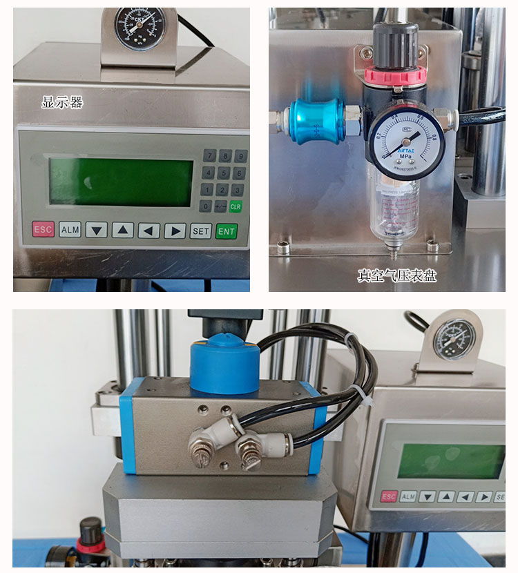 3、半自動(dòng)蜂蜜真空旋蓋機(jī)通過更換少量部件,能適用于形狀、尺寸不同瓶子的真空旋蓋;